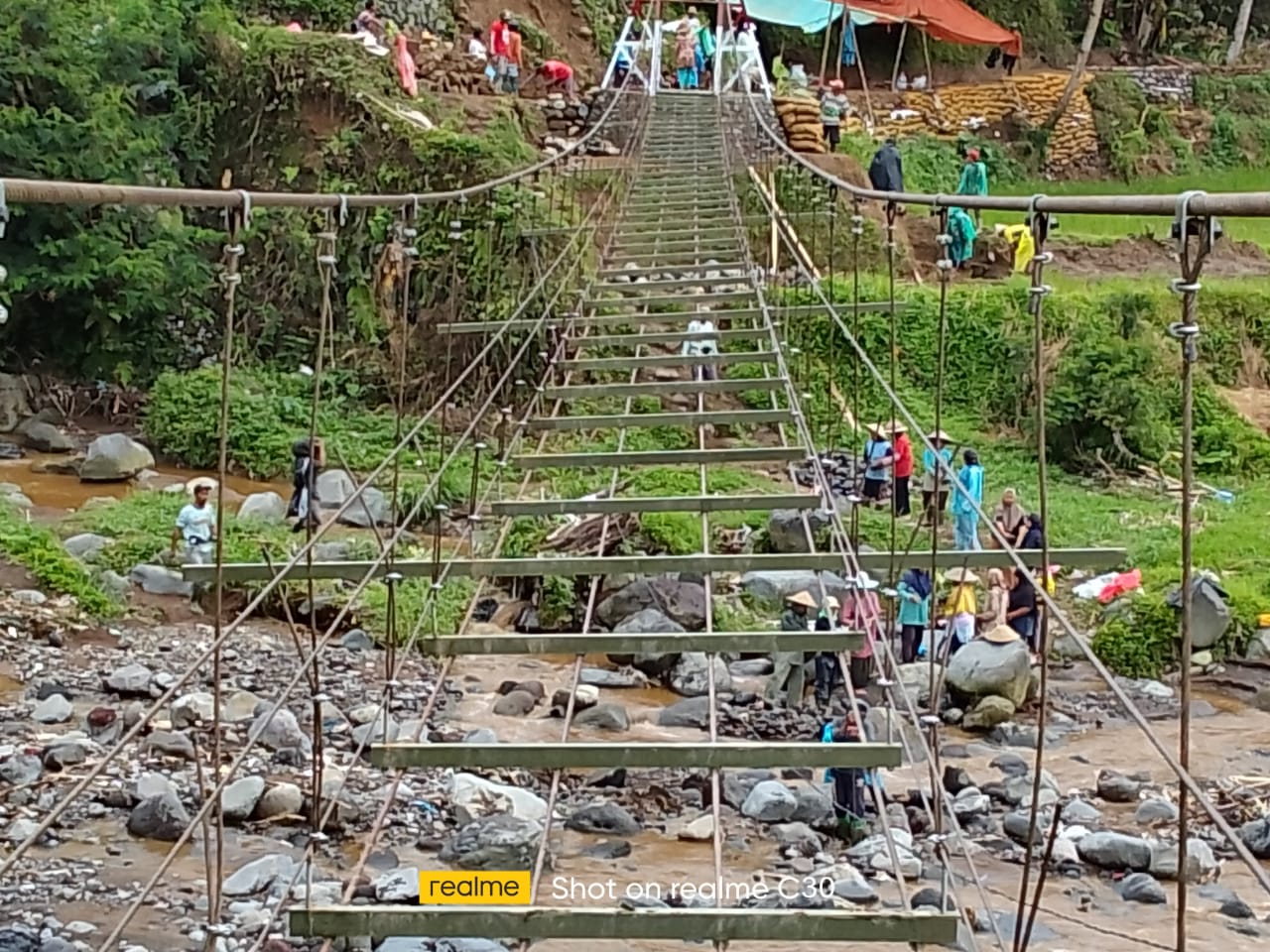 Pengerjaan Jembatan Gantung Garuda di wilayah Kodim 0707/Wonosobo terus dikebut meskipun dilaksanakan pada hari libur dan di tengah cuaca hujan Minggu 11/1. Kondisi tersebut tidak menjadi kendala berarti bagi personel TNI bersama warga, demi percepatan pembangunan agar jembatan segera dapat dimanfaatkan oleh masyarakat.
