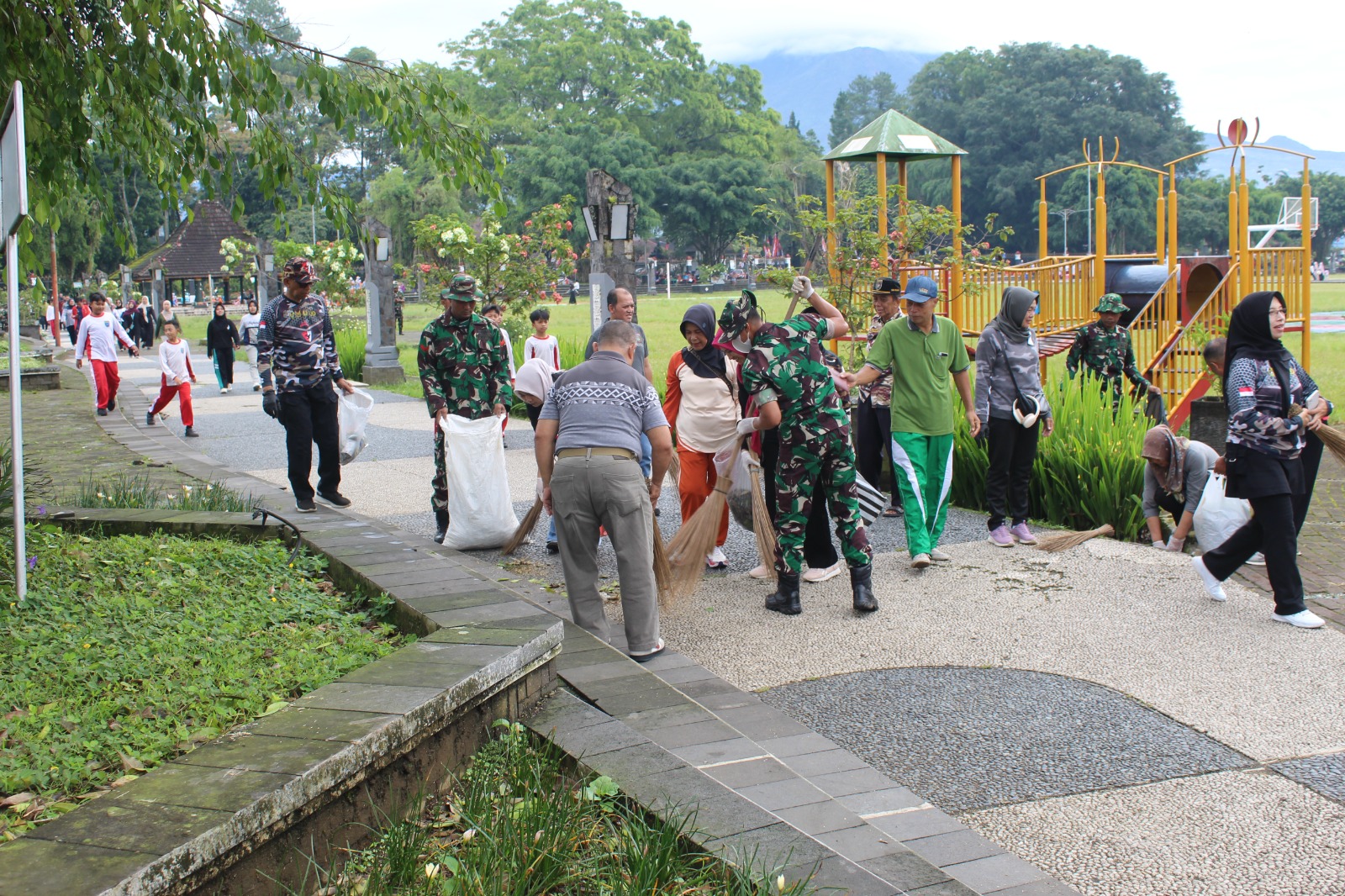 Gerakan Indonesia Asri, Kodim dan Pemda Wonosobo Bersihkan Alun – Alun