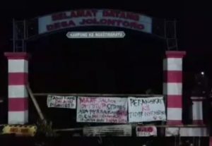Jalan Rusak, Warga Jolontoro Sapuran Coret Coret Kain/Banner Bentuk Kekecewaan kepada Pemdes