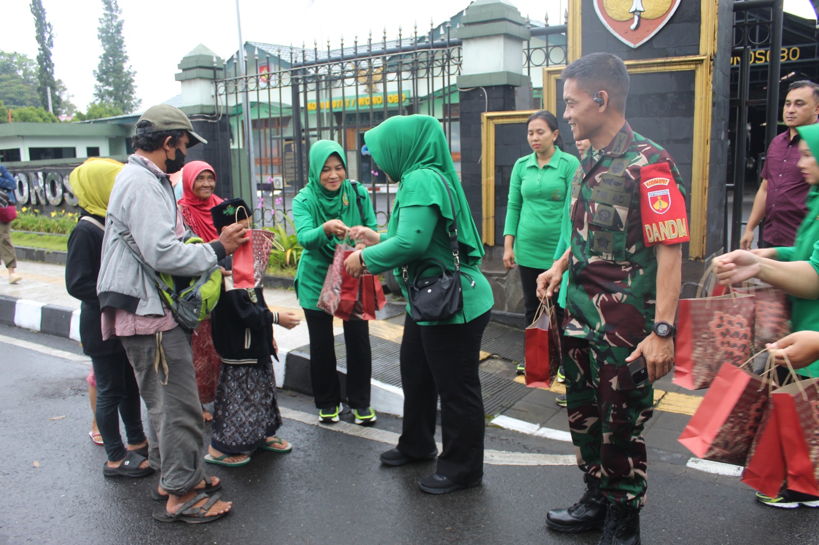 Suasana hangat menjelang berbuka puasa terasa di depan Markas Kodim (Makodim) 0707/Wonosobo. Komandan Kodim (Dandim) 0707/Wonosobo Letkol Inf Yoyok Suyitno, S.Sos., bersama Ketua Persit Kartika Chandra Kirana (KCK) Cabang XXVII Ny. Fifin Yoyok Suyitno memimpin langsung aksi pembagian takjil gratis kepada masyarakat yang melintas, Senin 16/3.