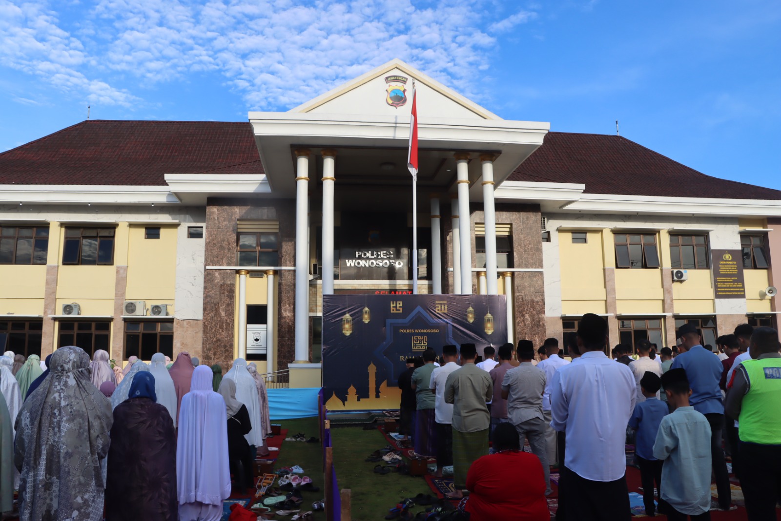 Halaman Markas Kepolisian Resor Wonosobo dipadati warga pada Sabtu pagi, 21 Maret 2026. Area yang sehari-hari digunakan untuk apel itu disulap menjadi tempat pelaksanaan salat Idul Fitri 1447 Hijriah. Sejak sebelum pukul 06.30 WIB, jemaah mulai berdatangan dengan membawa sajadah, memadati halaman Mapolres.