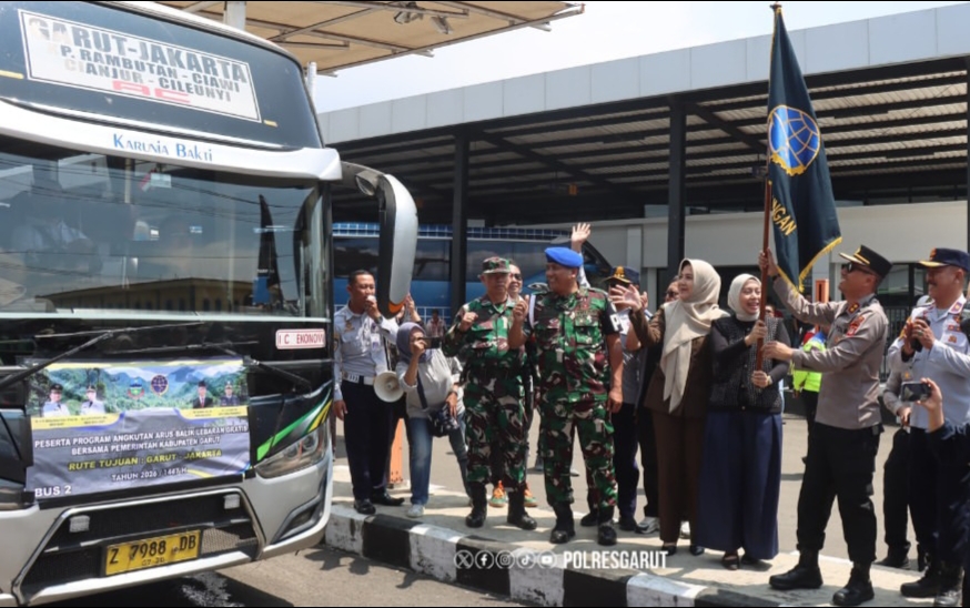 Pemerintah Daerah Kabupaten Garut berkolaborasi dengan Polres Garut menggelar program Angkutan Balik Gratis Lebaran 2026 sebagai bentuk pelayanan kepada masyarakat pasca Hari Raya Idulfitri 1447 Hijriah.