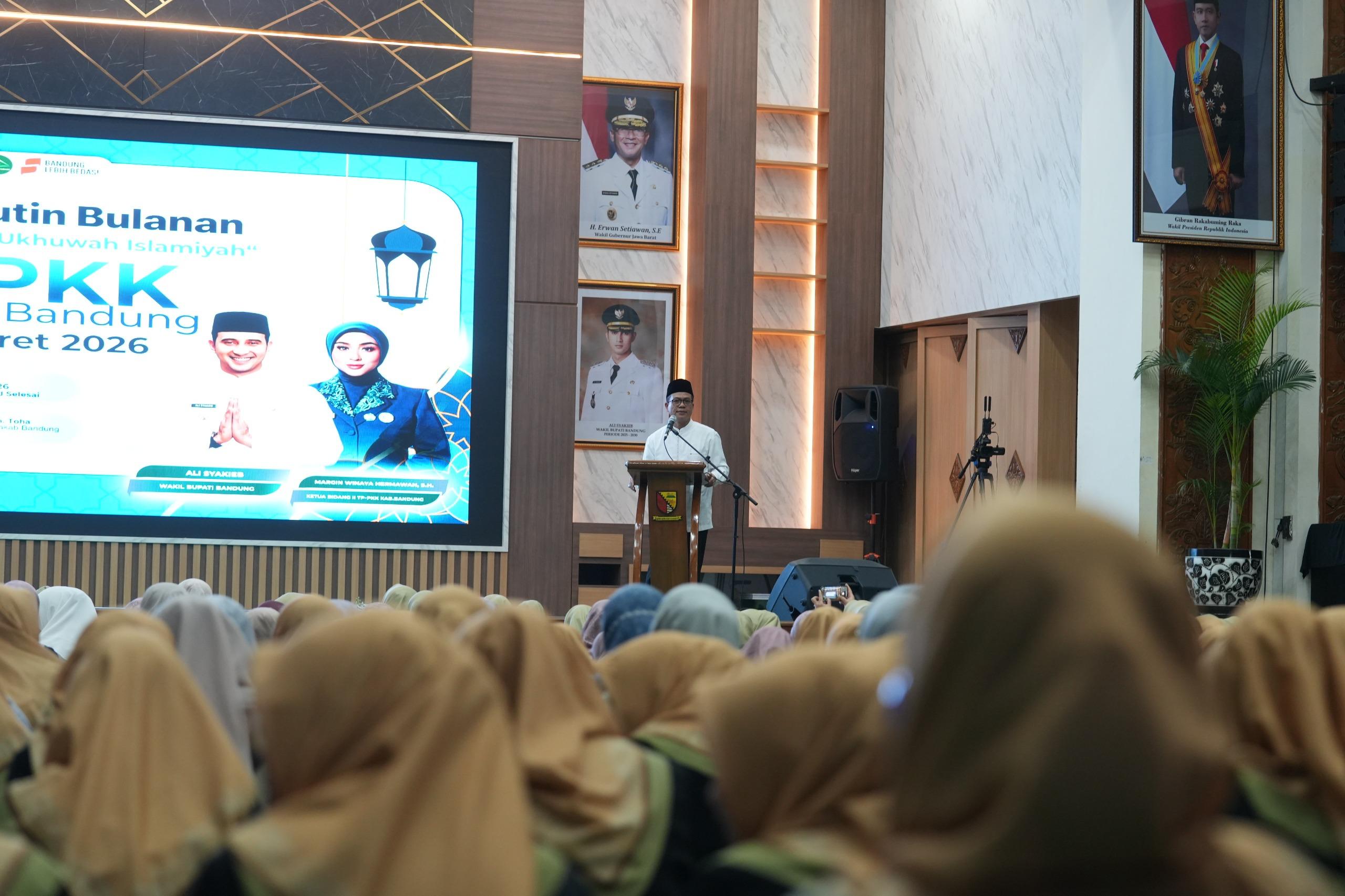 Tim Penggerak PKK Kabupaten Bandung menegaskan komitmennya sebagai motor penggerak penguatan keluarga sekaligus mitra strategis pemerintah dalam mendukung program pembangunan daerah. Hal tersebut mengemuka dalam agenda Pengajian dan Halal Bihalal Idul Fitri 1447 Hijriyah, Jumat (27/3/2026) di Gedung Moh. Toha, Soreang.