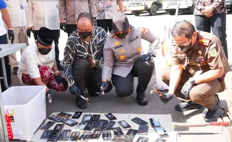 Pemerintah Kabupaten Bekasi menegaskan komitmennya dalam penegakan hukum yang transparan dan akuntabel melalui kegiatan pemusnahan barang bukti tindak pidana yang telah berkekuatan hukum tetap (inkracht). Kegiatan tersebut digelar di halaman Kantor Kejaksaan Negeri Kabupaten Bekasi, Cikarang Pusat, Jumat (9/4).